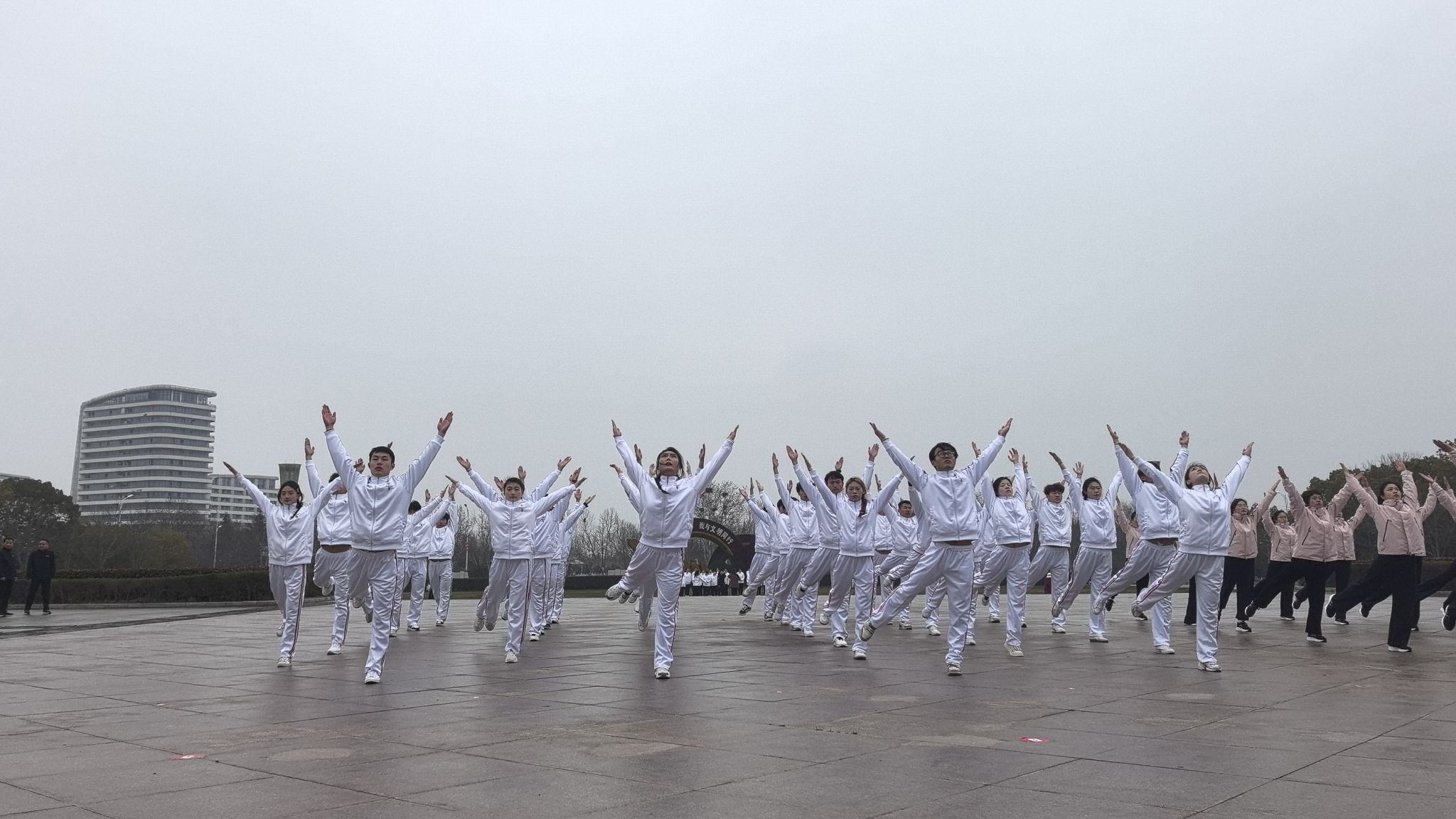 活动现场,队员们身着统一服装,精神抖擞、士气昂扬。在领操员的带领下,大家动作标准规范、节奏整齐划一、张弛有度,充分展现了广播体操的韵律美感与蓬勃力量,更彰显出我校师生团结协作、奋勇争先的良好精神风貌。